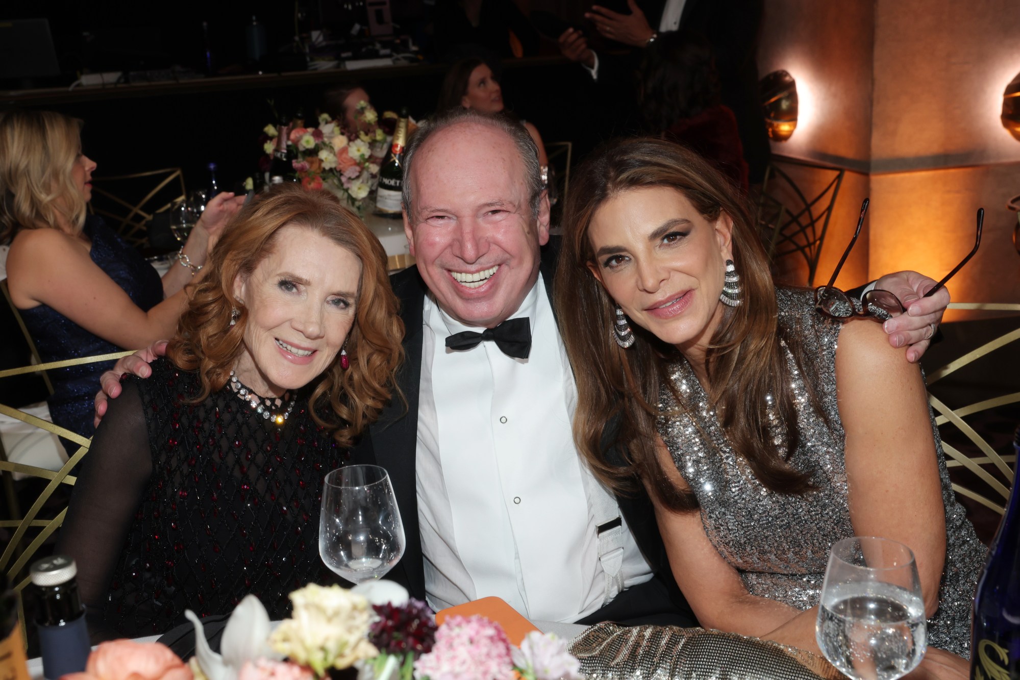 Dina De Luca, Hans Zimmer and Linda Bruckheimer during the 83rd Annual Golden Globes – Inside