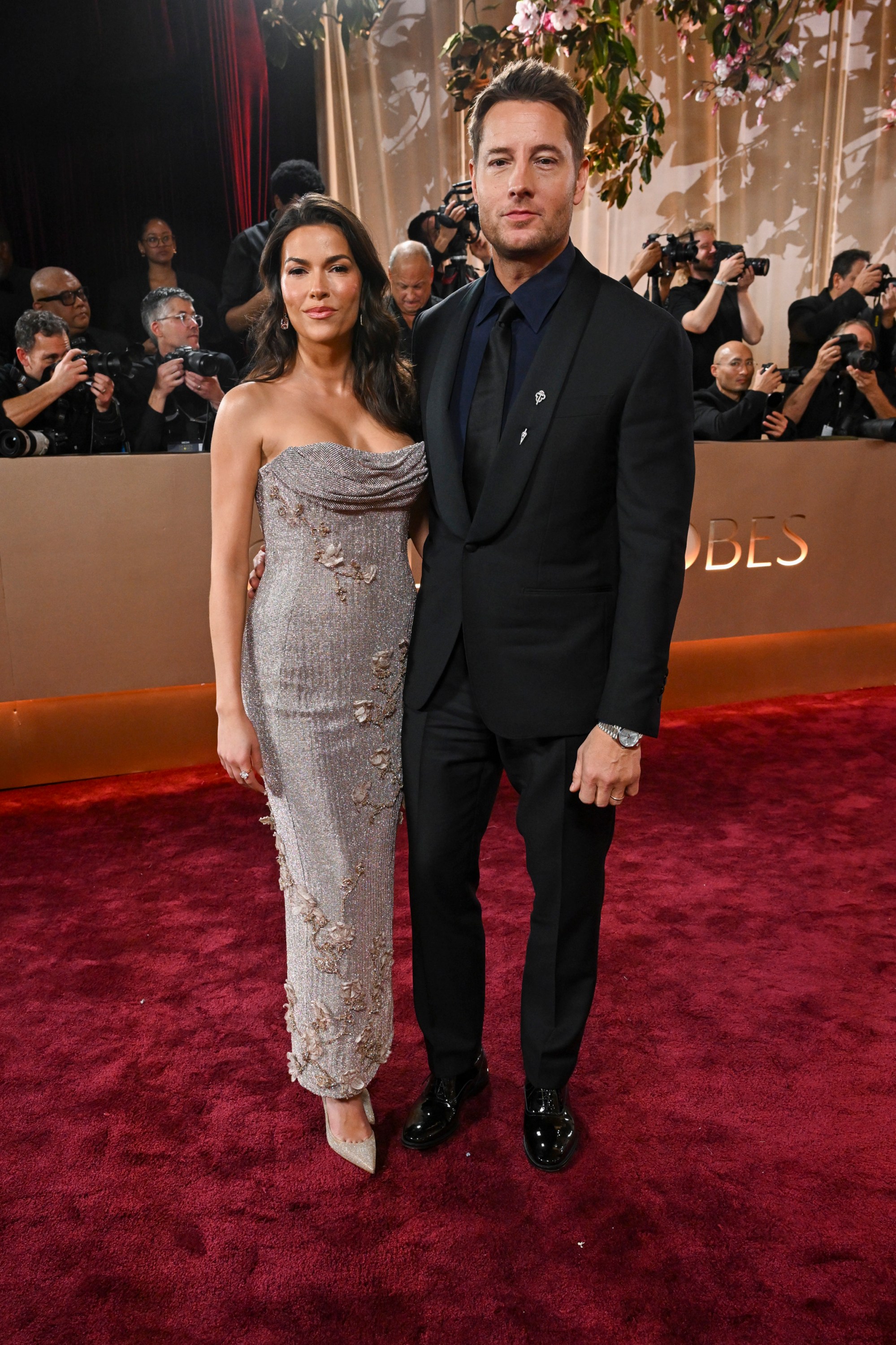 Sofia Pernas and Justin Hartley at the 83rd Annual Golden Globes held at The Beverly Hilton on January 11, 2026 in Beverly Hills, California.